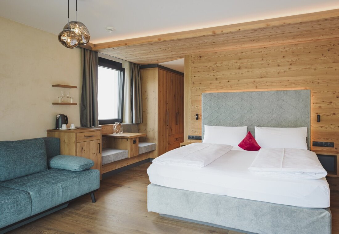 A comfortable seating area invites you to relax together, enjoy the tranquillity, and fully experience the romantic atmosphere of Boutiquehotel Acherl.