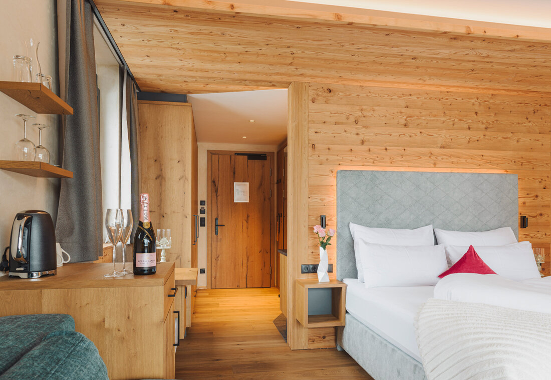 Our Junior Suites combine stylish comfort with a special sense of space and light. Large panoramic windows facing south or west fill the suite with natural daylight and open up wonderful views of the surrounding mountain scenery.
