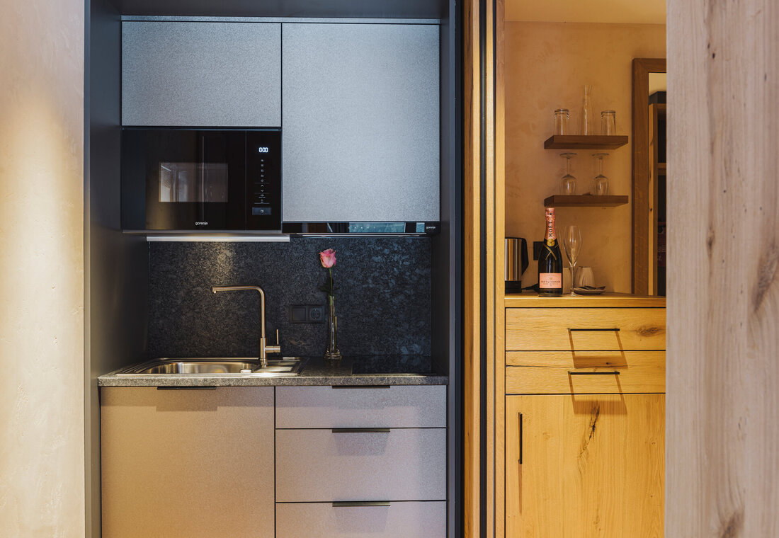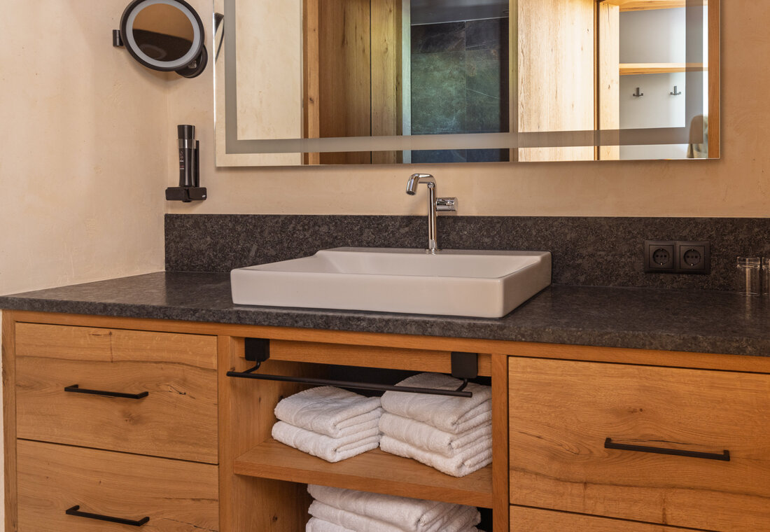 Thanks to its west-facing orientation, you can enjoy the warm evening sun well into the late hours. Even from your bed, the view opens up to the impressive mountain scenery surrounding Acherl, while the balcony offers wonderful panoramic views of the mountains as well as our garden and pool area.