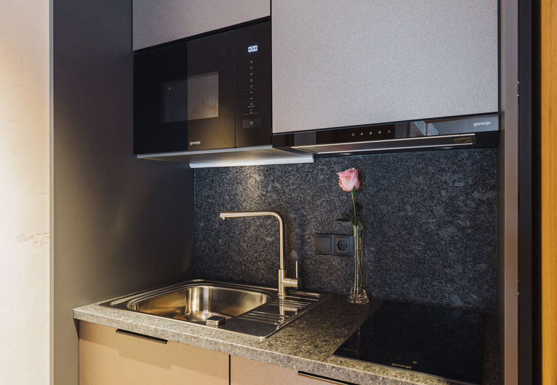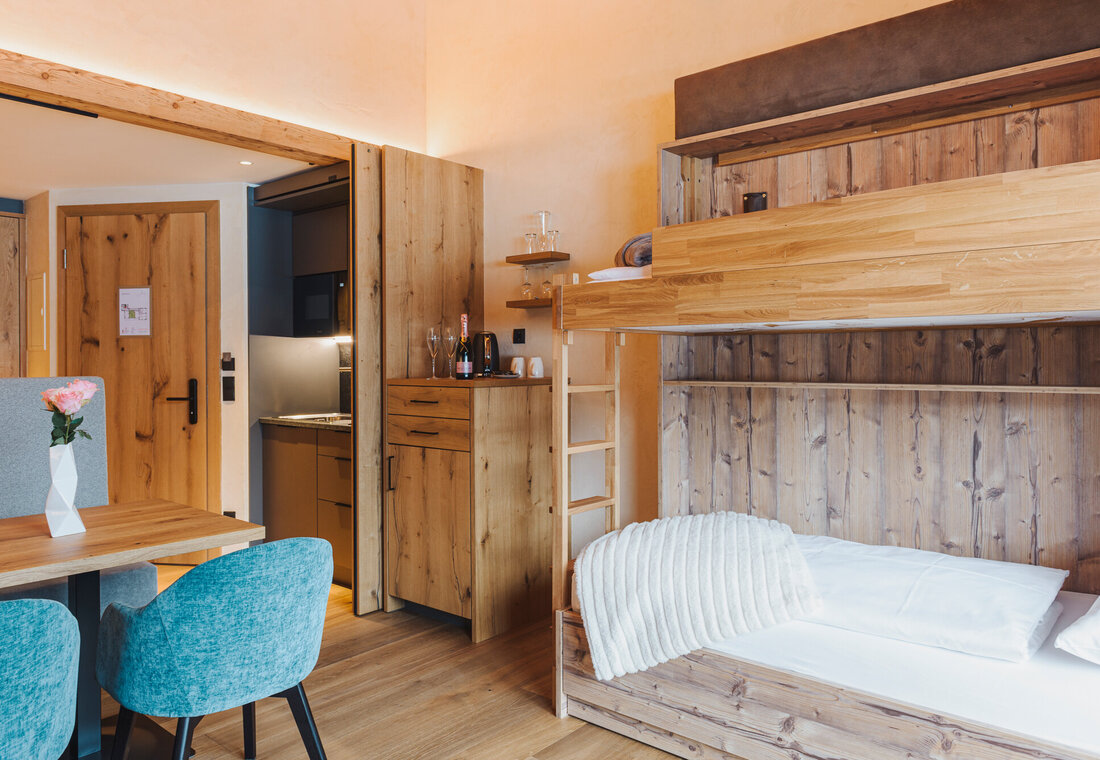 In our Sunset Studio, you will enjoy generous space and an especially relaxing atmosphere. The separate living and sleeping areas offer plenty of room for privacy and romance — or for valuable quality time with the whole family.