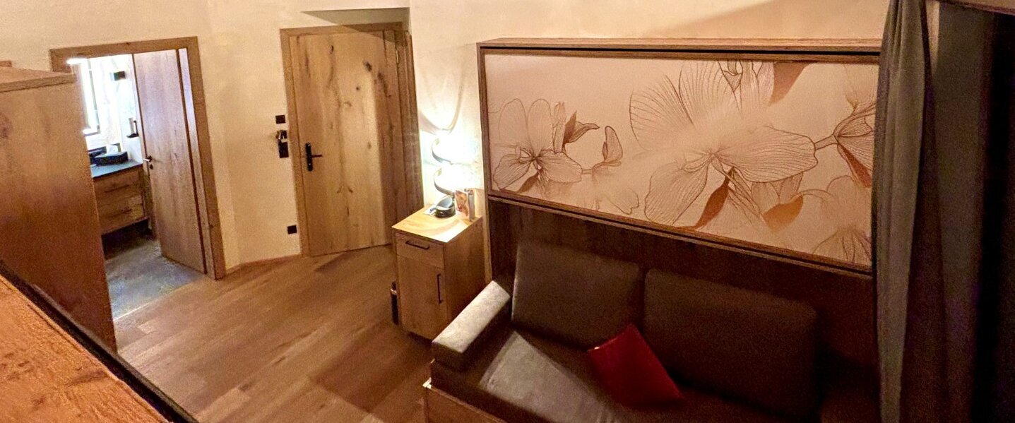 Ein gemütlicher Sitzbereich sowie der großzügige Balkon laden zusätzlich zum Entspannen ein und machen euren Aufenthalt im Acherl besonders komfortabel.